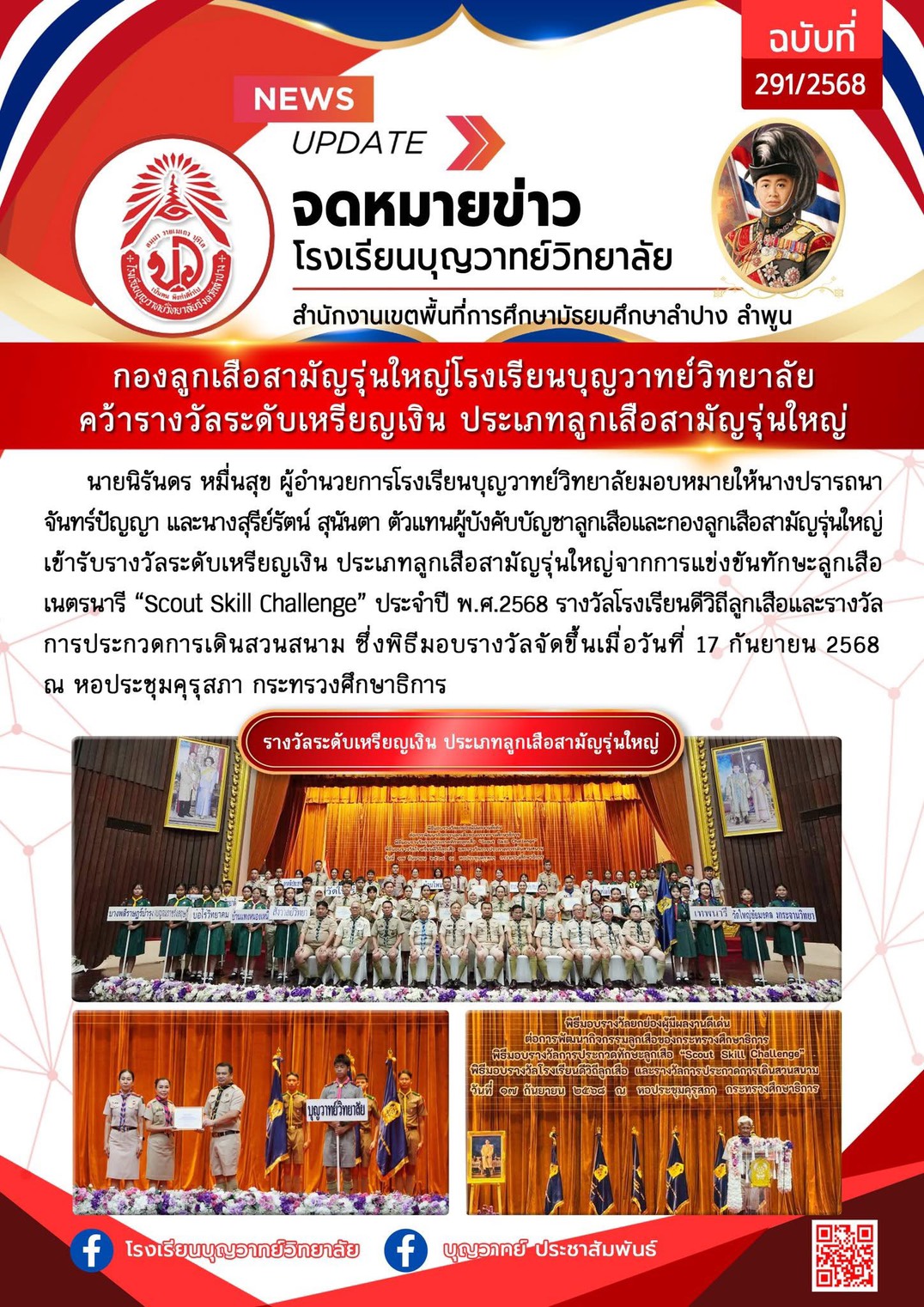 ได้รับรางวัลโรยงเรียนดีวิถีลูกเสือและรางวัลการประกวดการเดินสวนสนาม