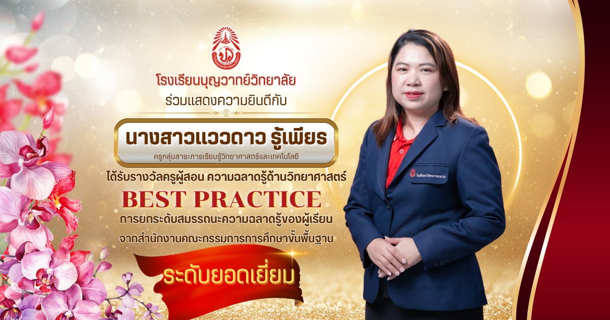 รางวัลครูผู้สอนความฉลาดรู้ด้านวิทยาศาสตร์(Best Practice)ระดับยอดเยี่ยม การยกระดับสมรรถนะความฉลาดรู้ของผู้เรียน